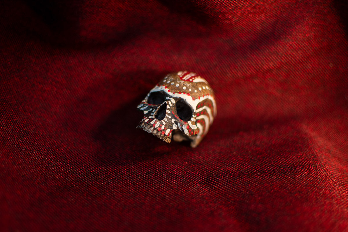 Unlike trophy skulls, a highly decorated and openly displayed skull is a form of ancestor whorship. In tribute to the ancestors who come before, many will decorate the remains of their honored and remembered kin.